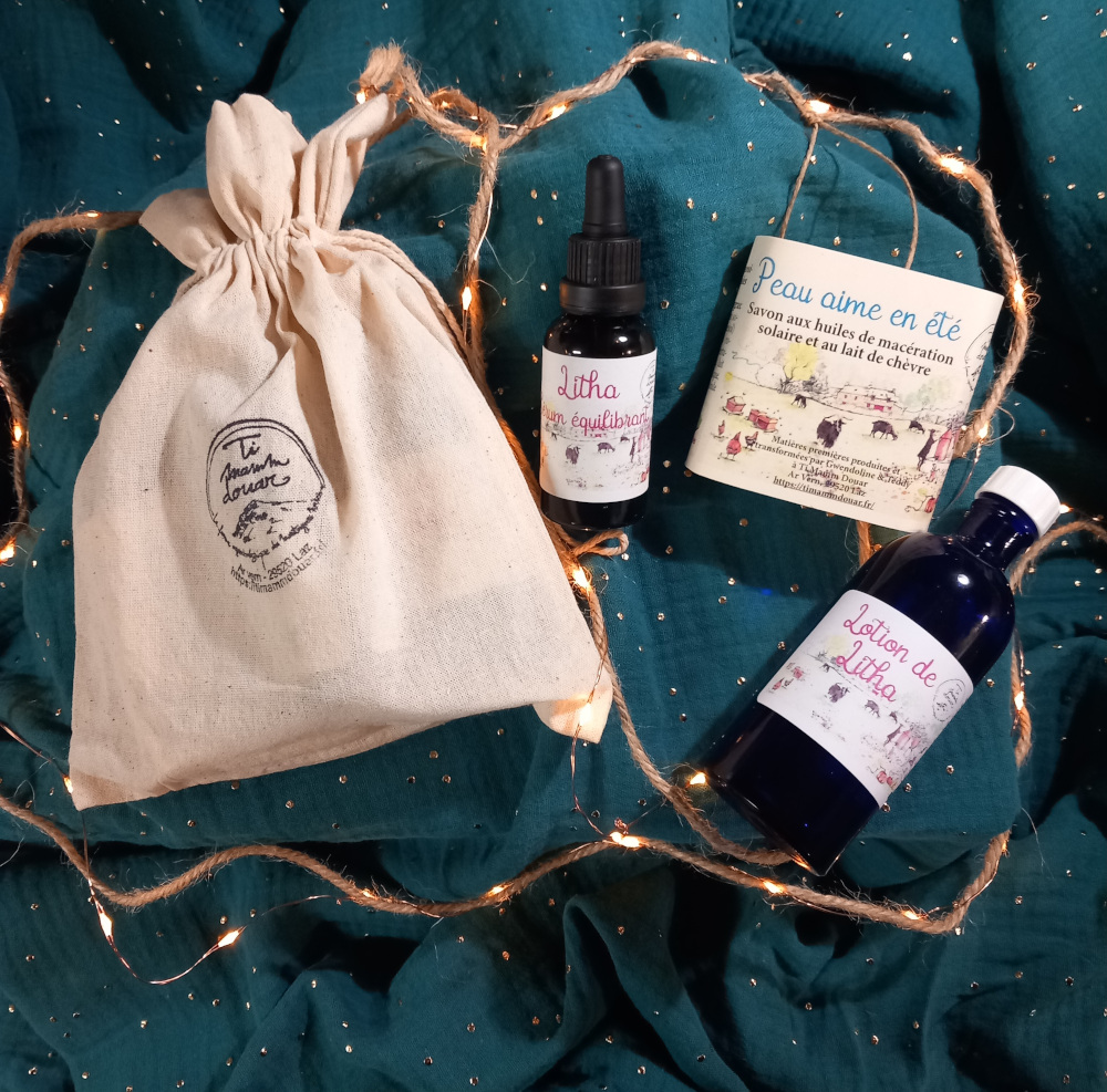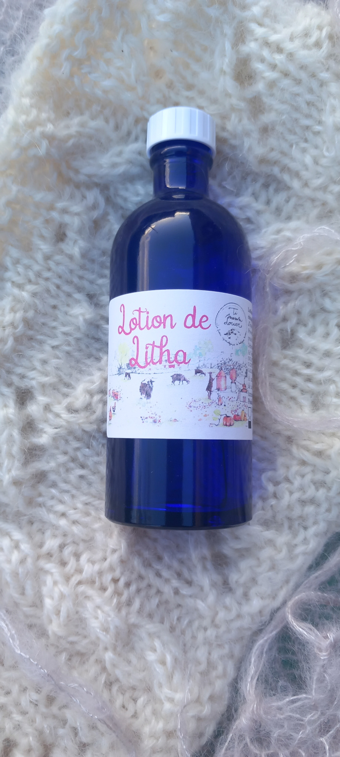 – Une lotion de la Litha 100 ml: lotion de toilette (sans rinçage) apaisante et équilibrante à base d’hydrolats de roses anciennes et géranium rosat