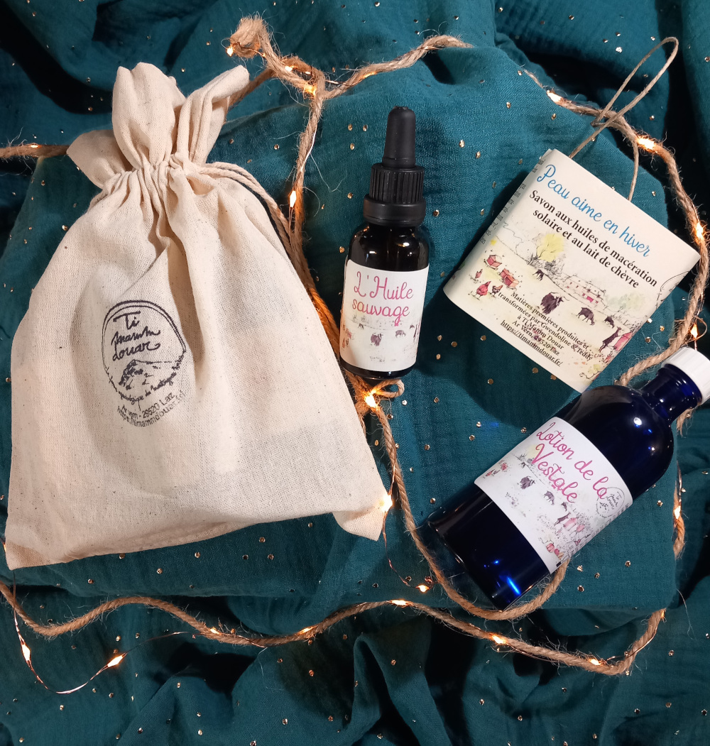 – Un Peau-aime en Hiver 100g: savon nourrissant aux plantes et lait de chèvres pour la toilette quotidienne