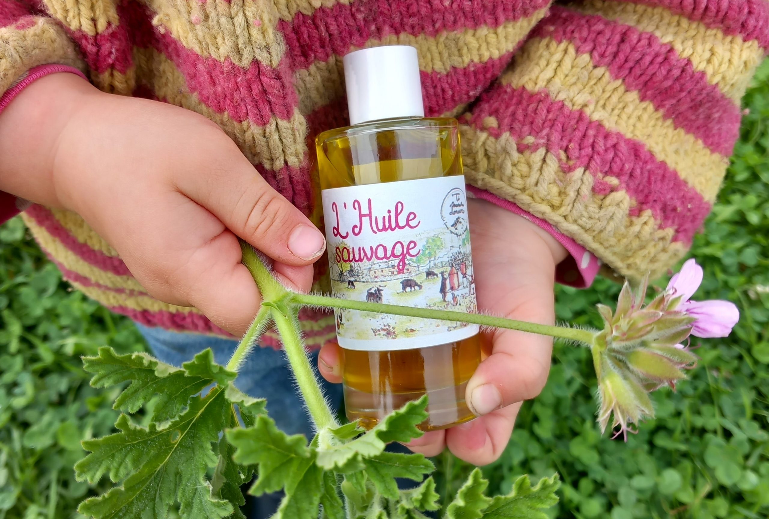 À base d’huiles de macération solaire de camomille romaine, calendula, géranium rosat, sureau, huile essentielle de lavande sauvage